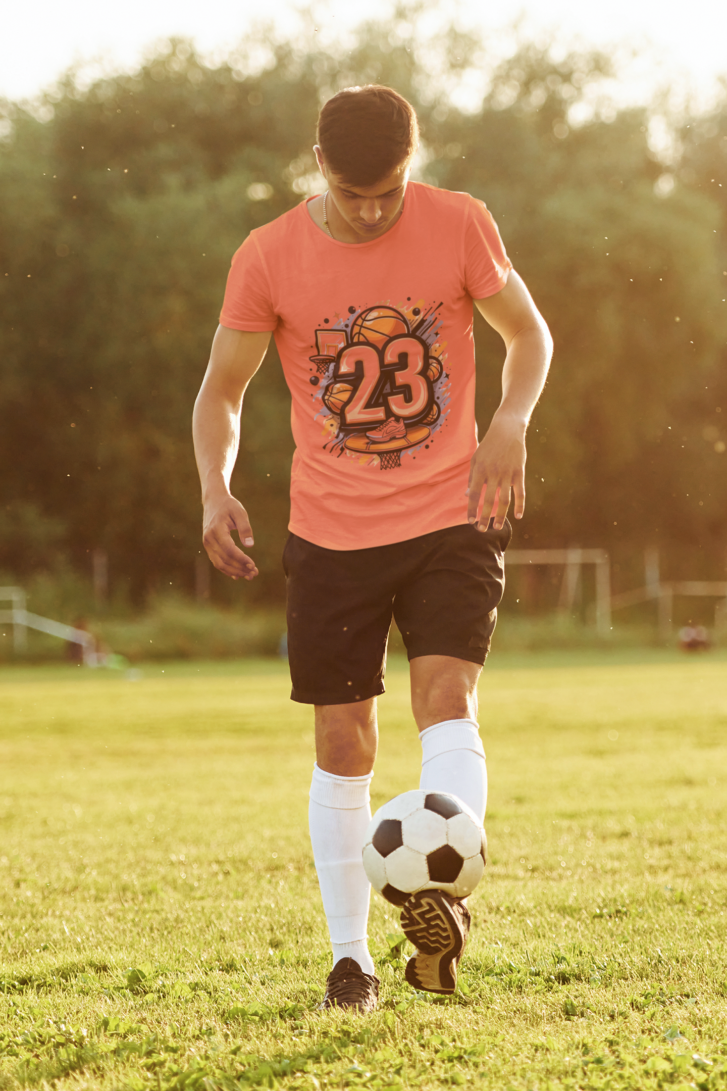 Graffiti-style sneaker and basketball graphic